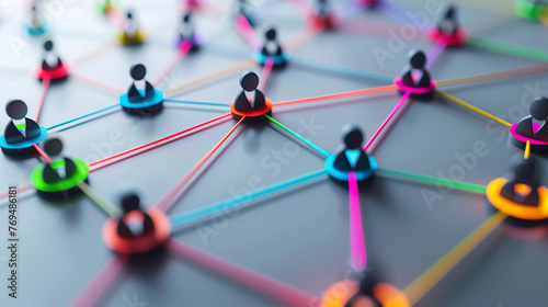 A dynamic 3D render of a network where each node is represented by an icon of a business person