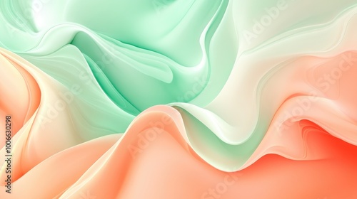 A dynamic abstract background in mint and peach with gradient shapes and soft edges, perfect for adding a fresh, modern feel.
