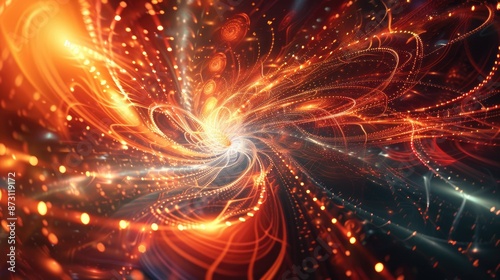 A dynamic abstract background with fractal patterns and glowing light effects.