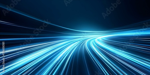 A dynamic abstract representation of bright blue light trails, suggesting speed and movement in a futuristic setting. Concept Dynamic Light Trails, Abstract Futuristic Design, Bright Blue Motion