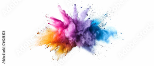 A dynamic burst of colored powder creates a stunning abstract explosion on a white background