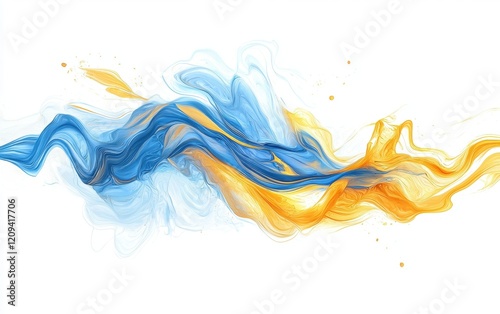 A dynamic burst of sky blue and golden yellow paint, creating fluid abstract patterns on a white background