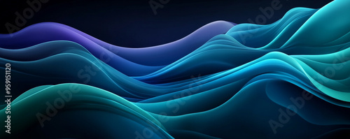 A dynamic business background featuring abstract wave patterns in a gradient of deep blues and greens. The design is fluid and modern, with a sense of forward momentum.