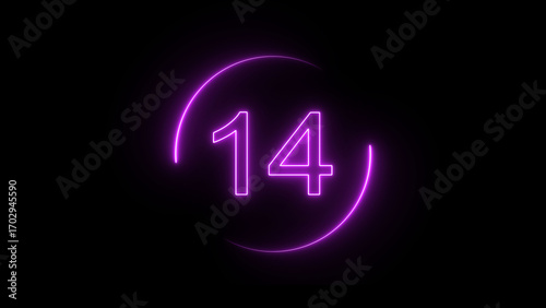 A dynamic circular animation, and glowing neon number 14 animation . on a black background. and creating a stunning video.4k video
