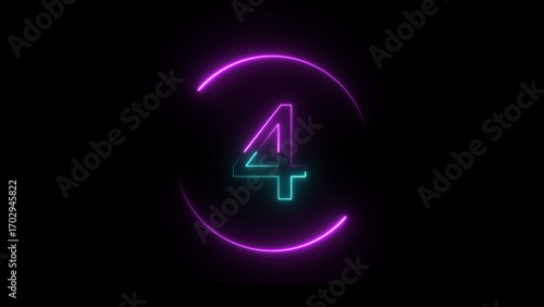 A dynamic circular animation, and glowing neon number 4 animation . on a black background. and creating a stunning video.4k video