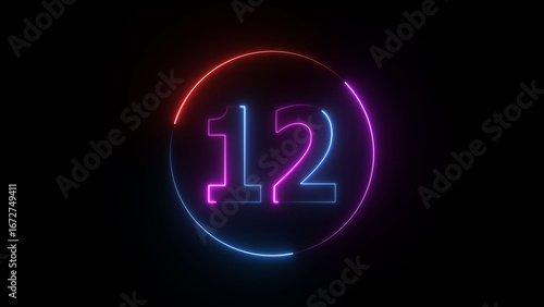 A dynamic circular illustration, and glowing neon number 12 illustration . on a black background. and creating a stunning illustration 4k illustration