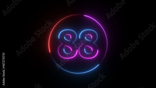 A dynamic circular illustration, and glowing neon number 88 illustration . on a black background. and creating a stunning illustration 4k illustration