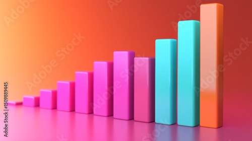 A dynamic D bar chart with vibrant colors, depicting positive growth trends with each bar having a reflective surface, symbolizing business progress