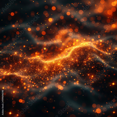 A dynamic, fiery scene against a dark background, featuring orange-yellow lava flowing outward and bright spots stars or molten material orbiting the central mass The image evok - AI-Generated