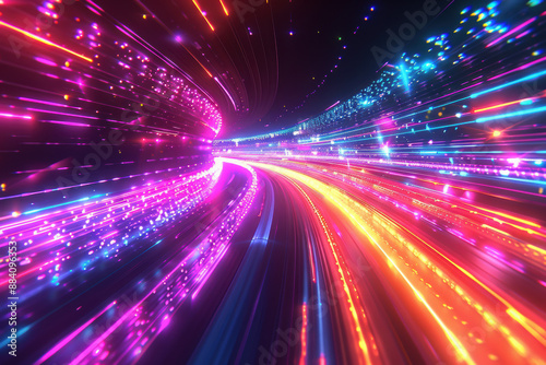 A dynamic, futuristic light trail with vibrant neon colors representing speed, motion, and modern technology.