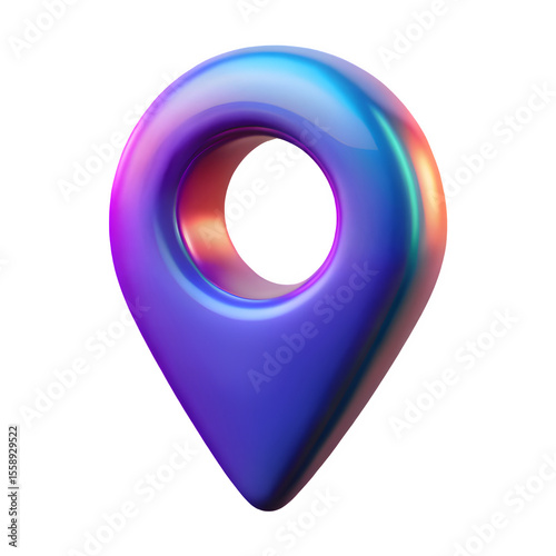 A dynamic, glossy location marker pin, cool blue and warm purple. Isolated on white or transparent background. PNG format.