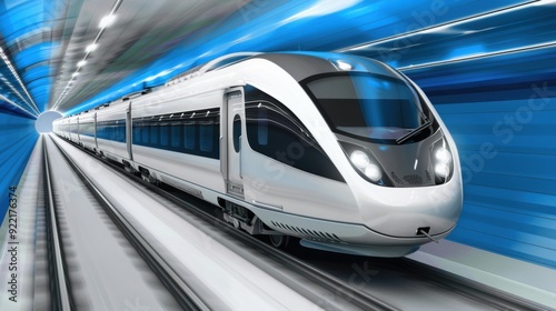 A dynamic illustration of a white subway train passing through a tunnel, highlighting the modern and efficient design of the transportation system