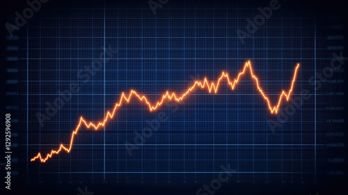 A dynamic line graph displays an upward trend in data, highlighted in orange against a dark grid background, illustrating growth or positive change.