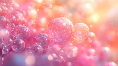 A dynamic pattern of transparent spheres fading into soft coral tones