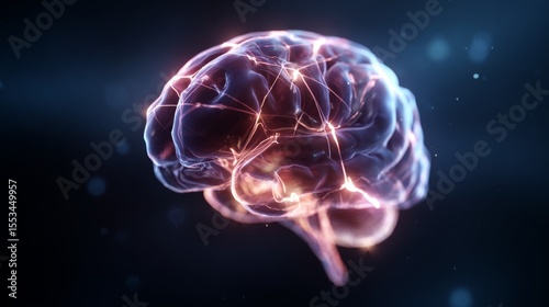 A dynamic shot of a brain illustration with neon-like highlights, representing different functional areas such as memory, emotion, and cognition.