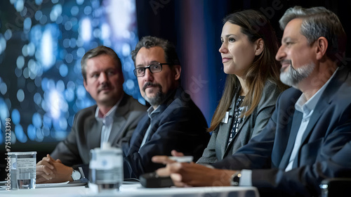 A dynamic shot of a panel discussion on cybersecurity trends and threats, featuring industry experts exchanging insights and expertise.