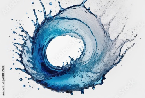 A dynamic splash liquid, creating a dramatic and abstract shape against a white background.