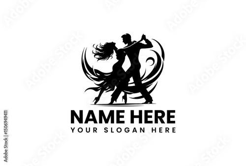 A dynamic vector logo silhouette of a couple gracefully dancing tango with passion