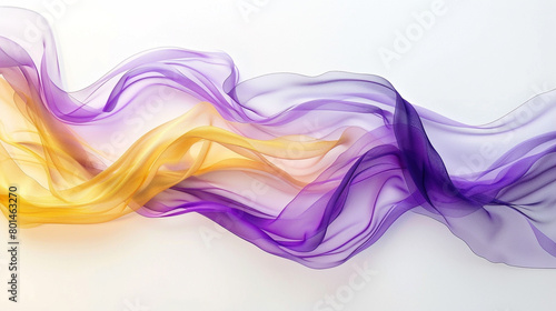 A dynamic wave of violet and soft yellow, curling luxuriously and isolated on a white canvas, resembling a high-definition photograph.