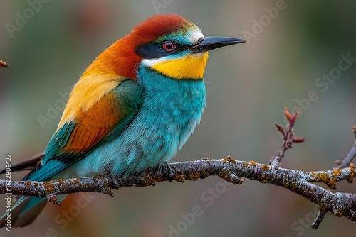 A european bee eater perched on a branch with colorful plumage in a natural setting outdoors