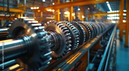 A factory production line with large gears and steel parts, representing the industrial theme of modern web design.