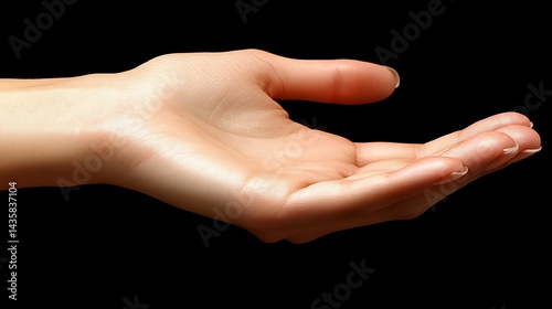 A fair-skinned hand, palm up, against a black background