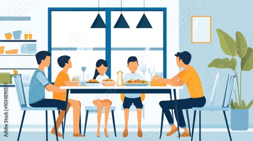A family sitting around a table with visibly smaller portions of food, symbolizing inflation's impact on living standards.