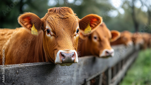 A farm management system with cattle feeding in a stable row, designed for commercial livestock operations