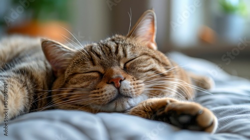 A Fat Cat Resting Contentedly On A Light Background