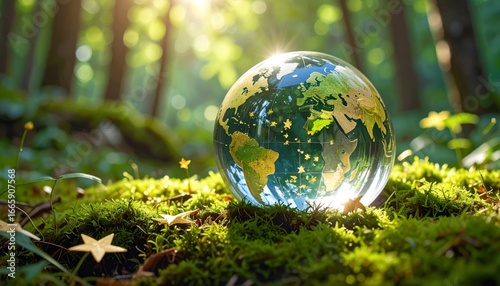 A festive 3D globe with a Christmas tree sits on a green background, symbolizing global environmental celebration