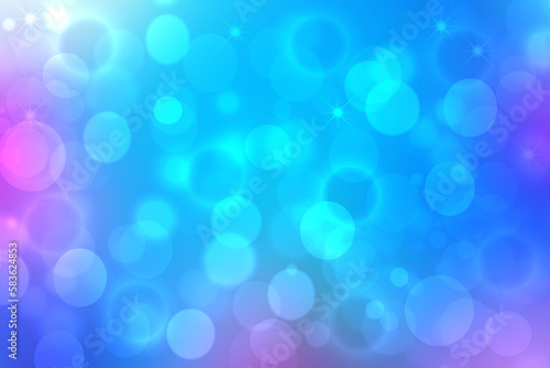 A festive abstract gradient orange pink blue background texture with glitter defocused sparkle bokeh circles and stars. Card concept for Valentine, Happy New Year, party invitation or other holidays.