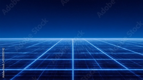A field of solar panels set against a bright blue sky effectively demonstrates the implementation of renewable energy technology and sustainable practices