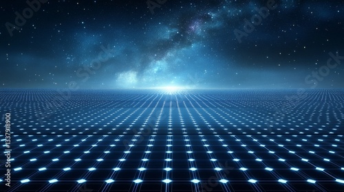 A field of solar panels under a starry night sky, with the Milky Way and striking sunset clouds, sets the stage for a futuristic renewable energy vista