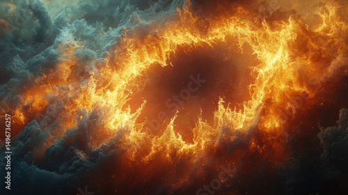 A fiery border encircles a translucent, ethereal texture, a visual testament to the power of generative AI, where digital art meets the realm of fantasy