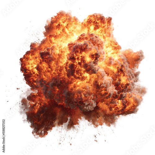 A fiery explosion with smoke and intense heat, isolated on transparent background
