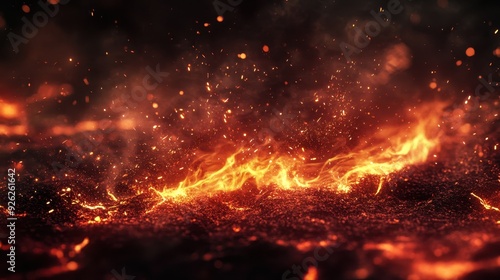 A fiery landscape with glowing lava and sparks, evoking a sense of heat and intensity.