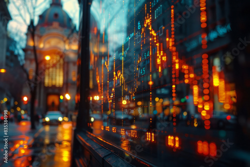 A financial chart with candlestick patterns that move upward, symbolizing increased stock prices or revenue,