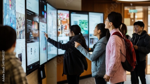 A financial literacy program being conducted in a community center, interactive digital displays and engaging content for all age groups, educational and inclusive environment
