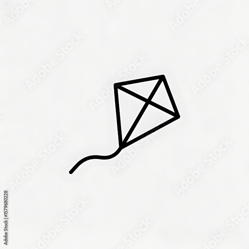 A flat black and white line icon of a kite with tail