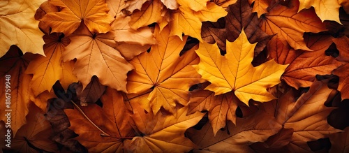 A flat lay composition of autumn leaves with ample open space for additional content or imagery