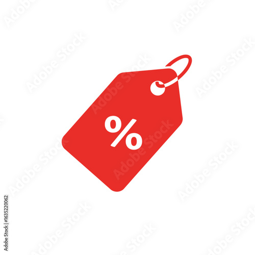 A flat red price tag icon with a white percent symbol, representing a sale, discount, or special offer.