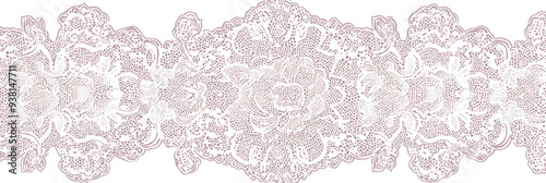 A flat vector illustration background of a seamless lace pattern on white cotton fabric, incorporating vintage lace motifs, ornate details, interwoven patterns, delicate and elegant