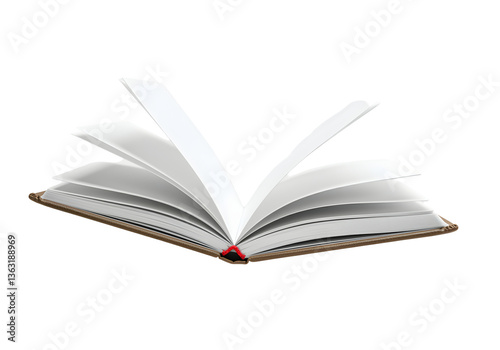 A floating open notebook with blank white pages, isolated on a solid white background.