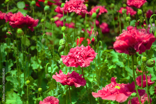 A flower of a poppy (Latin Papáver) on a meadow. Poppy seeds are used in confectionery. The seeds produce technical oil for the production of margarine. Abstract background. Selective focus, Close-up.