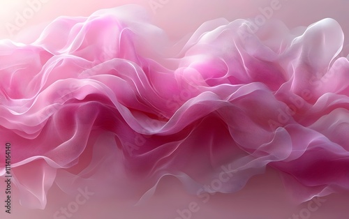 A flowing abstract composition featuring soft, translucent layers of pink and white hues, creating an elegant and dreamy atmosphere of motion and light.