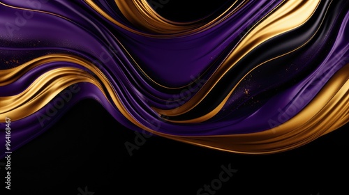 A flowing abstract design featuring rich purple and gold hues, creating a sense of elegance and movement.