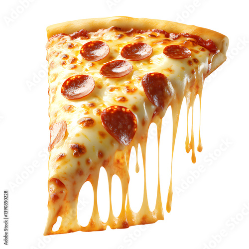 A Fluffy 3D Cartoon Pizza Slice with Melted Cheese and Pepperoni Isolated on Transparent Background