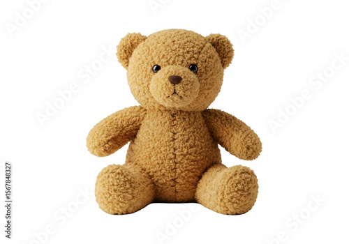 A fluffy brown teddy bear sitting comfortably isolated on transparent background