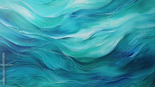 A fluid, wave-like energy pattern in shimmering shades of teal and aqua, evoking a sense of underwater currents Ai Generative
