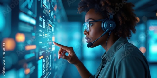 A focused customer support agent engages with digital interfaces, showcasing modern technology's role in enhancing client interactions.